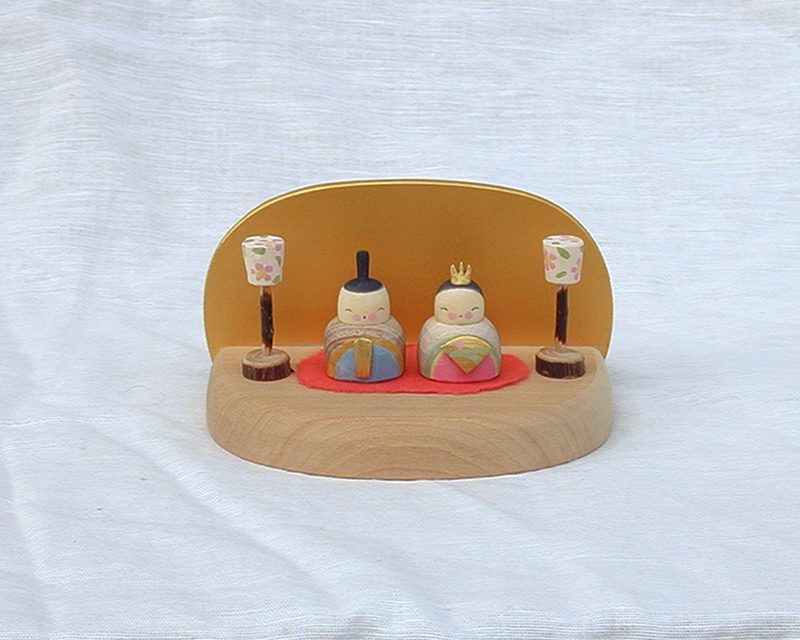 「どんぐり」の形をした小さな木のおひな様です。(一段飾りは木箱に入っていません)